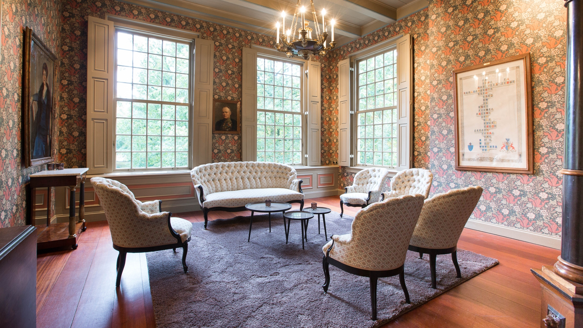 Op de hoofdverdieping komt men via de hal, die versierd is met fraai stucwerk en gemarmerde deuromlijstingen, direct in de grote zaal, die aan de tuinzijde is voorzien van een uitgebouwde erker. Uniek voor dit huis is het feit dat alle vertrekken van de bel-etage zijn voorzien van geschilderde behangsels. In de zaal bevinden zich zeegezichten en Chinoiserieën. De grote suite heeft een prachtige reeks met Hollandse landschappen. In 1954 werd het huis in vervallen staat aangekocht door de gemeente Driebergen om het te bestemmen tot gemeentehuis.