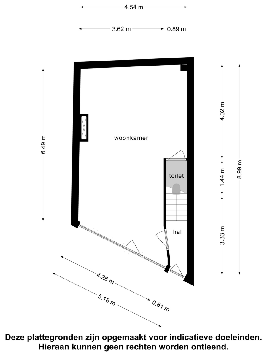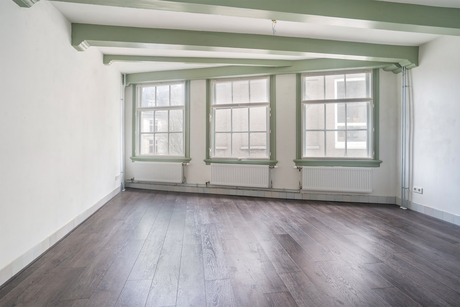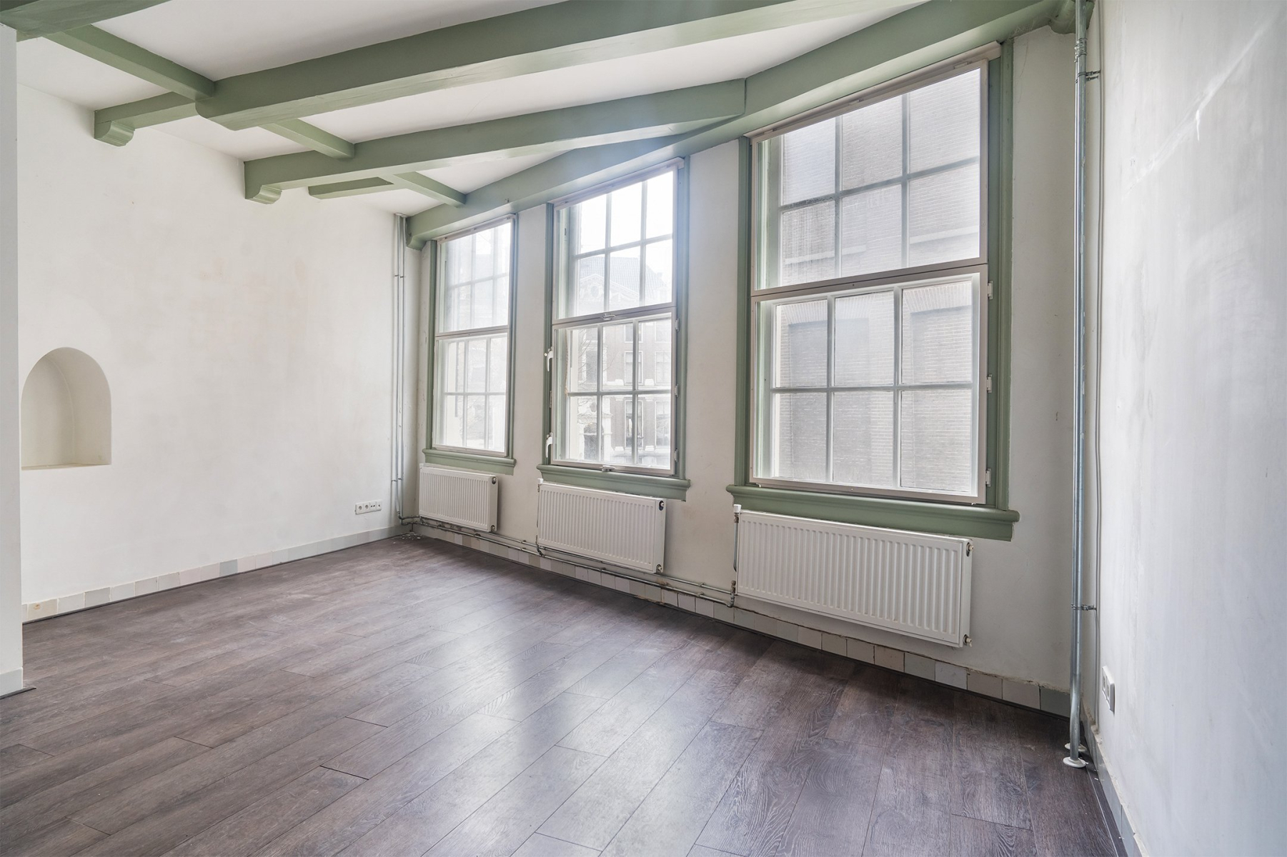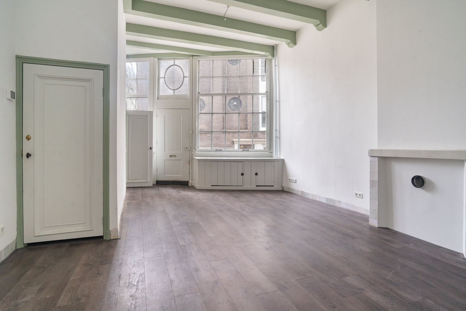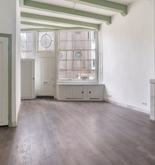 Begane grond Lichte woon- of werkruimte van 32 m² met separate entree en groot raam dat een prachtig uitzicht biedt op de Herengracht en Beulingstraat. Toilet (1,5 m²) en interne doorgang naar entree woonhuis.