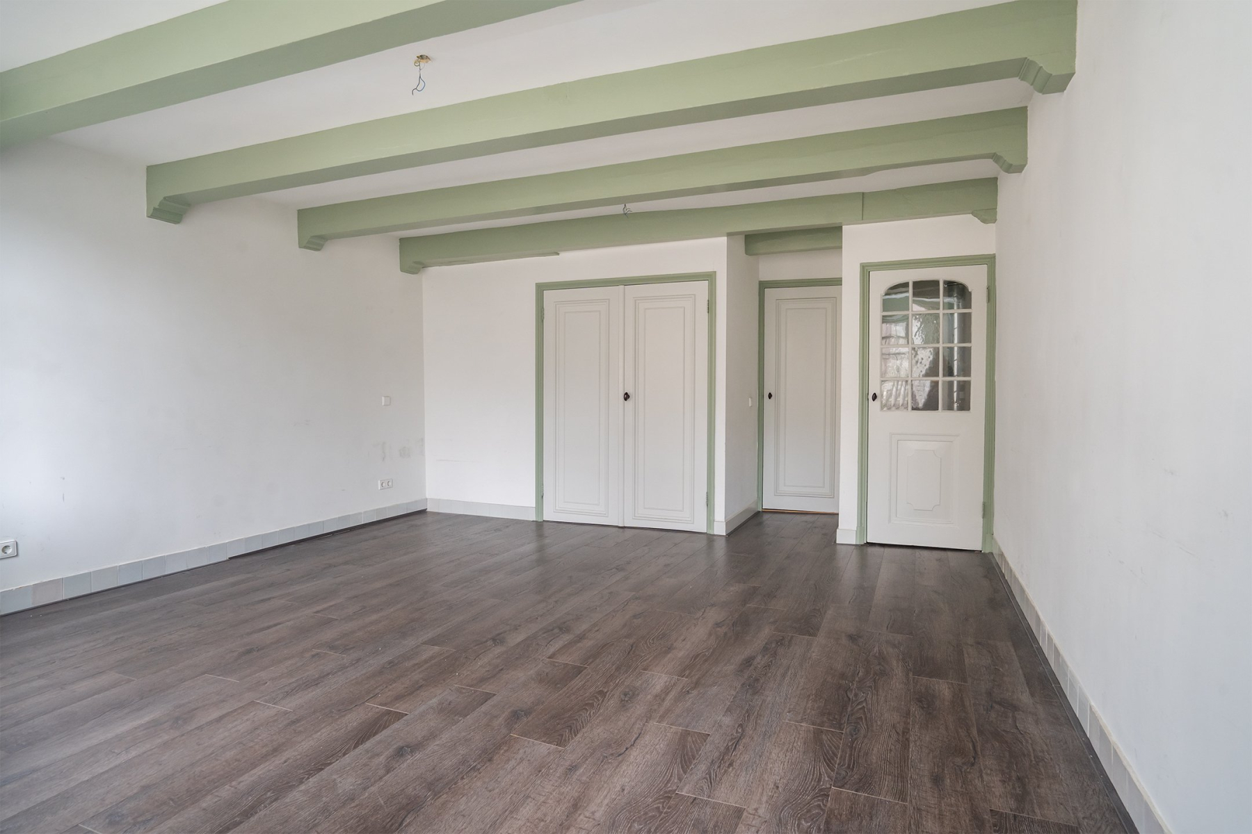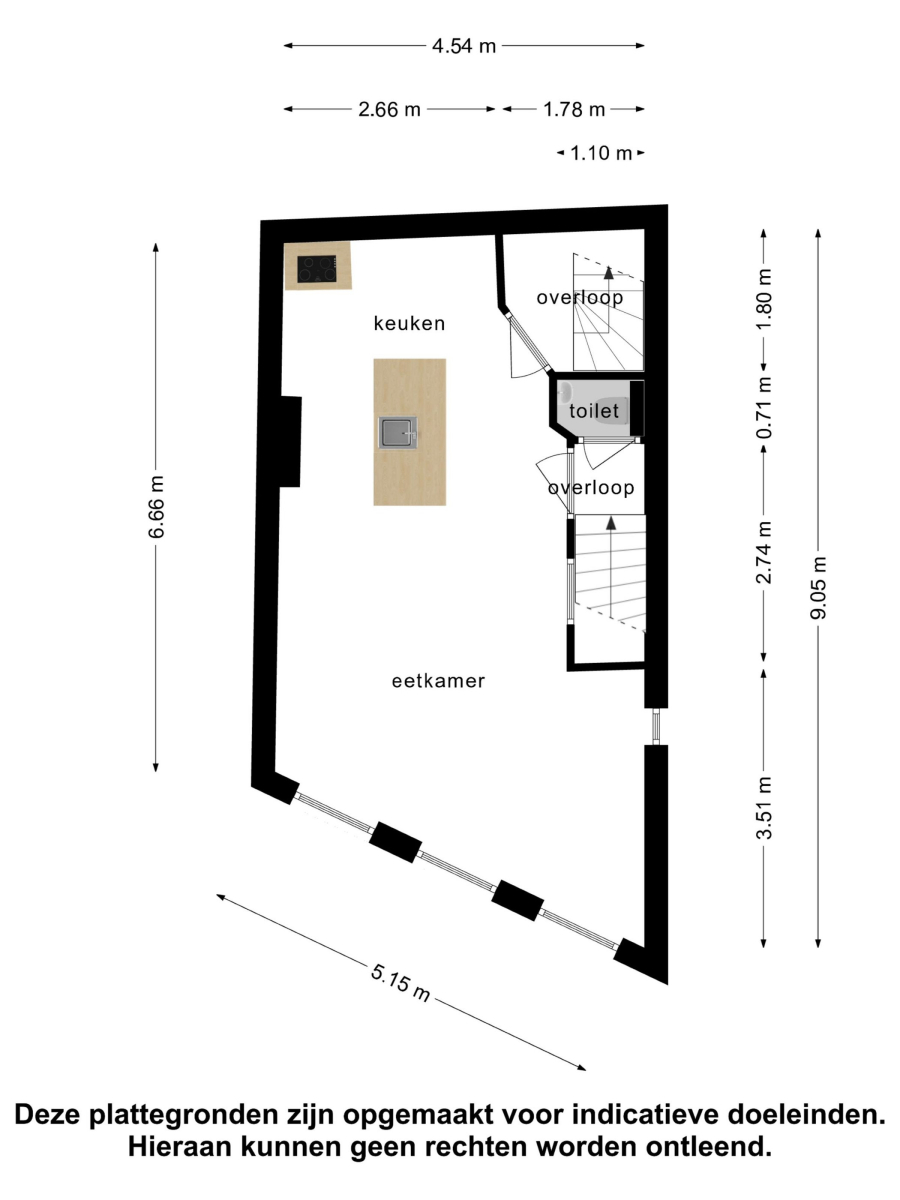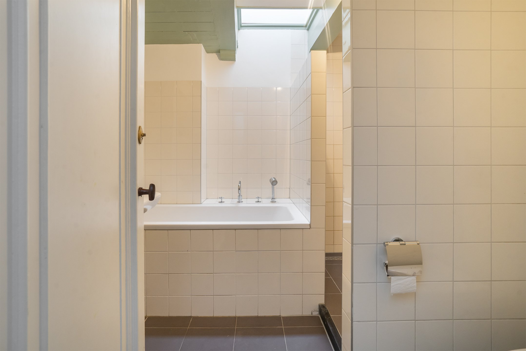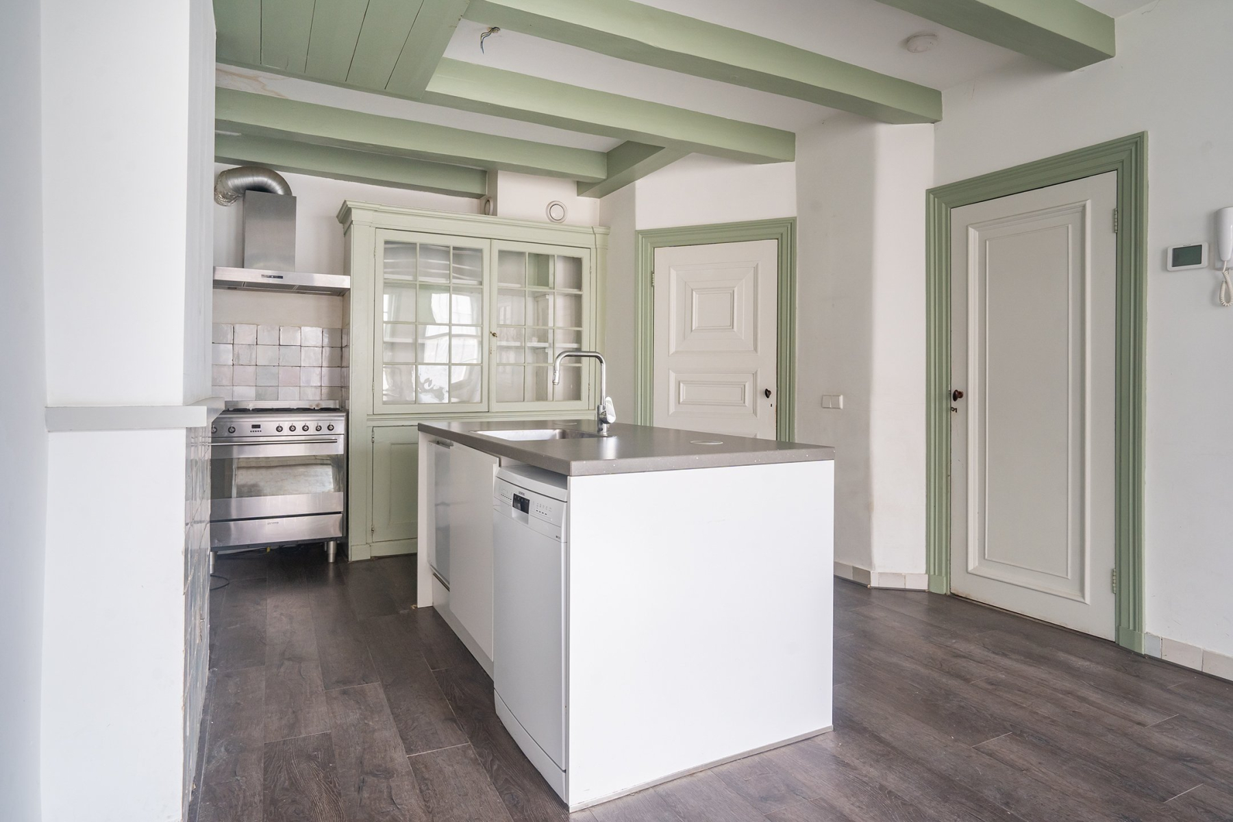 Eerste verdieping Bereikbaar via eigen straatentree of interne doorgang. Royale woonkeuken van 29 m² met authentieke provisiekast. Toilet bij de trapopgang.