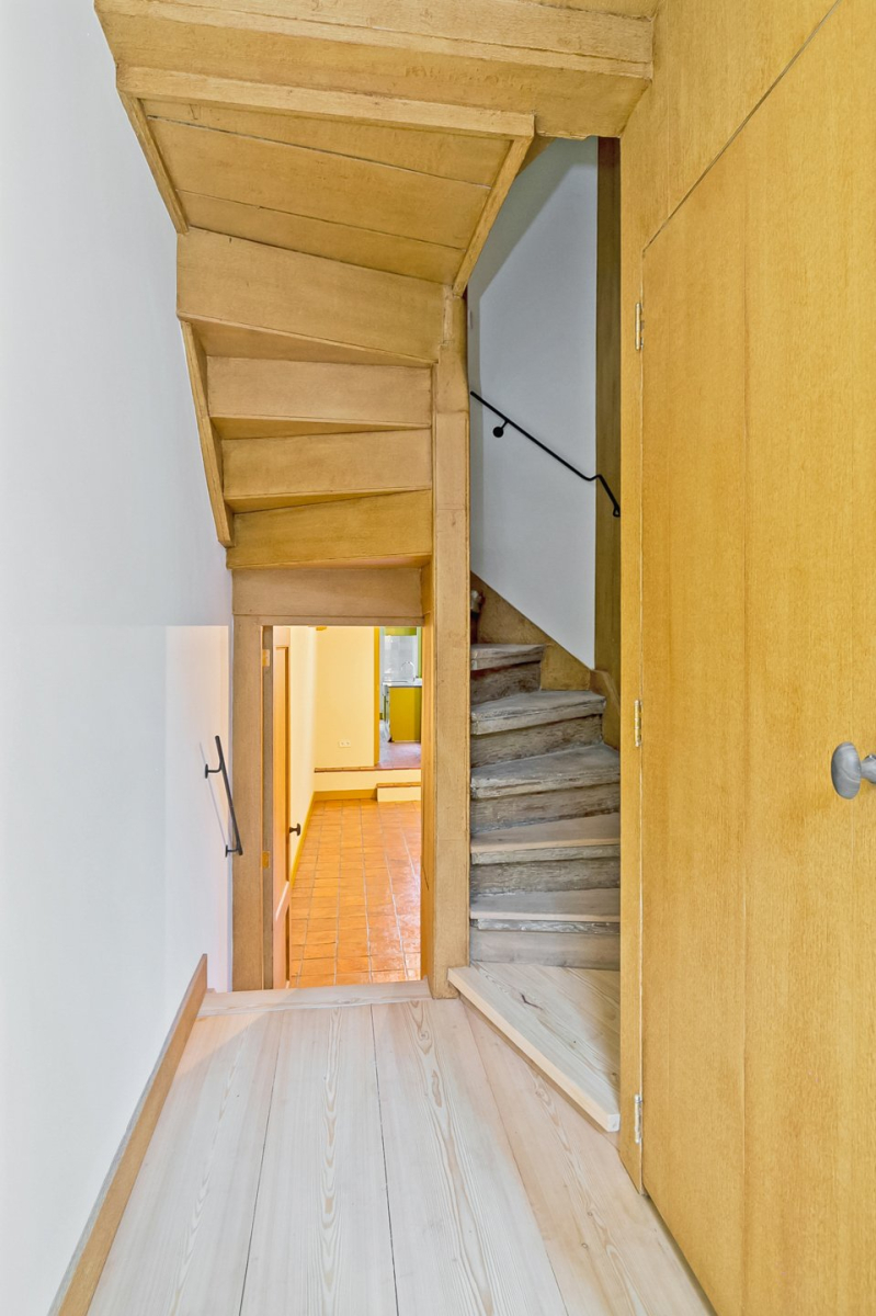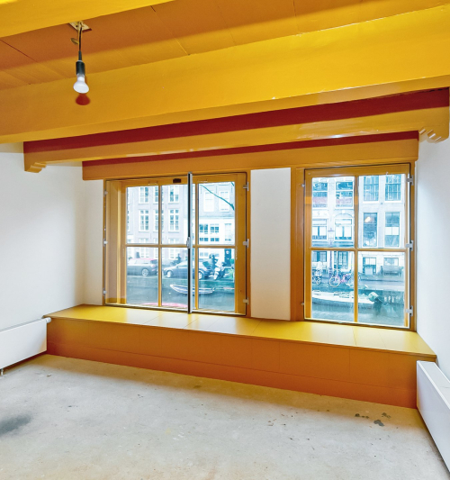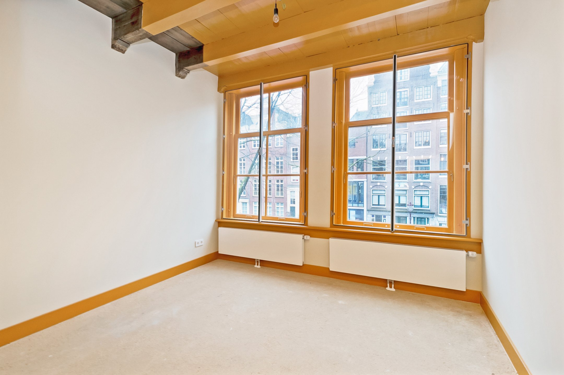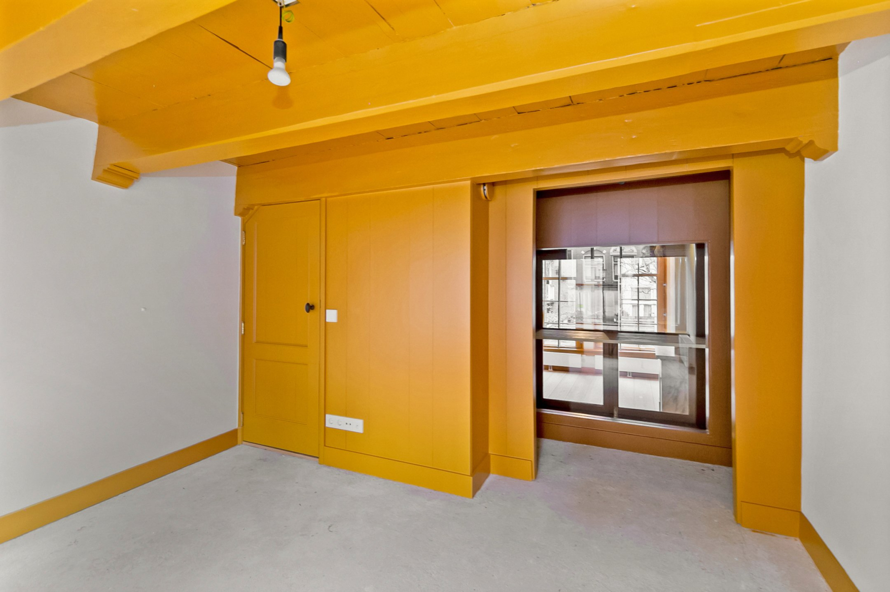 Via de trap bereikt u de insteek met een elegante voorkamer met uitzicht op de gracht (12 m2) en een royale achterkamer met schouw (20 m2). Vaste kasten volgen de vorm van de voormalige bedstedewand en alle historische balken zijn in het zicht. Tussen beide ruimten is een groot binnen-raam gemaakt zodat er zeer veel daglicht diep de woning binnenkomt.