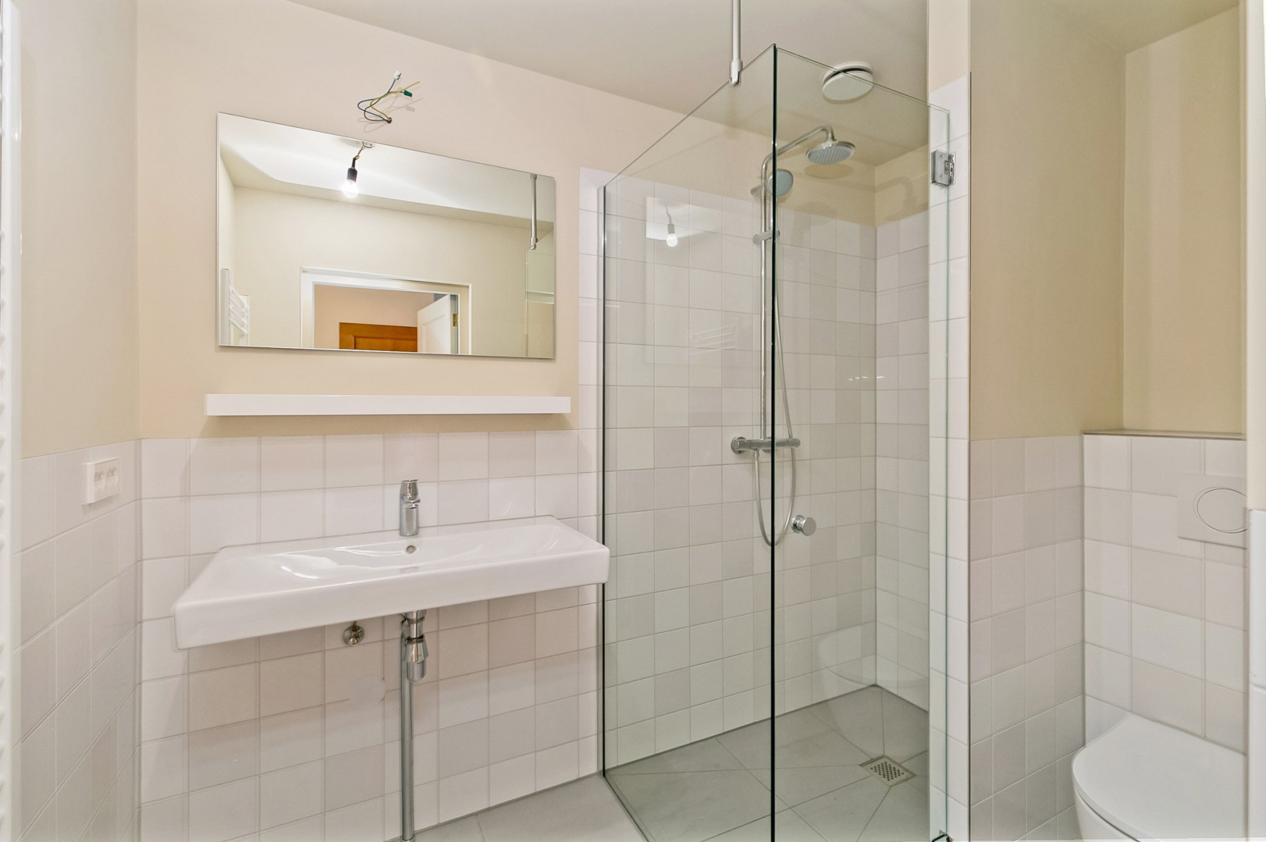Via de overloop is er aan de grachtzijde een slaapkamer (11 m2) en aan de tuinzijde een slaapkamer (16 m2) met toegang tot een moderne badkamer, voorzien van inloopdouche, wastafel en toilet.