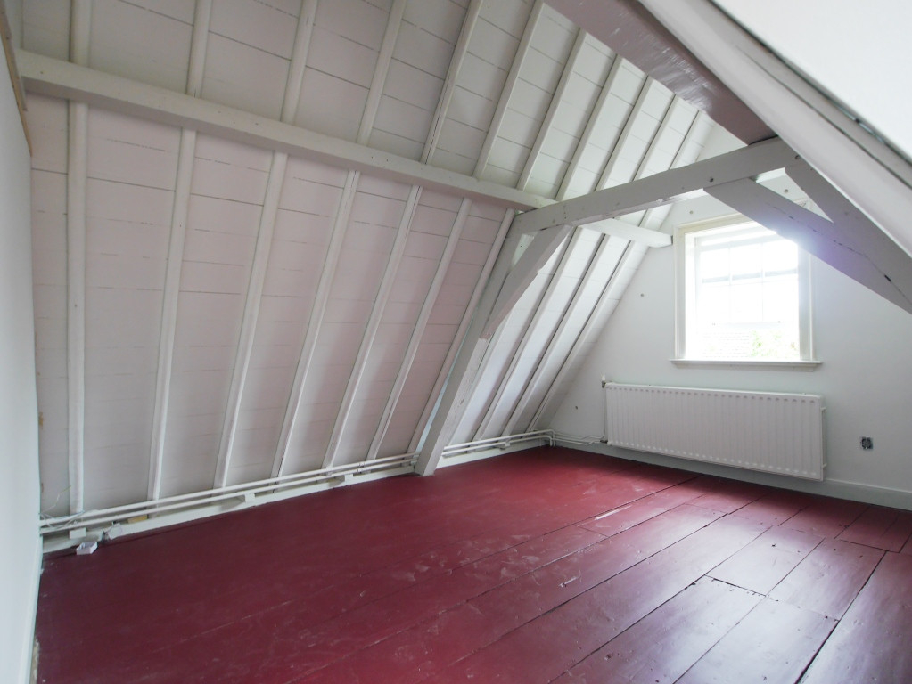 Tweede verdieping: Overloop, ruime slaapkamer aan de voorzijde (17 m2) met dakkapel. Moderne badkamer met inloopdouche en wastafel. Aan de achterzijde een slaapkamer van 11 m2.