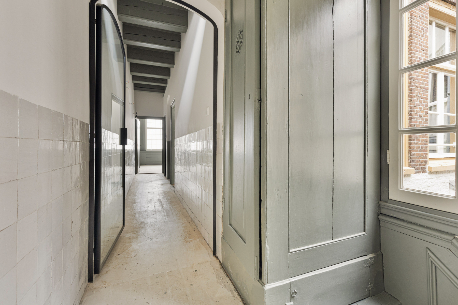 Woonverdiepingen: Eerste verdieping: Overloop met aansluitend een lange hal met trapopgang, en toegang tot de ruime woonkamer met twee schouwen in het voorhuis. In het achterhuis de nieuwe keuken voorzien van inductieplaat en afzuiging. Tweede verdieping: Overloop. Twee royale slaapkamers, een badkamer voorzien van douche en dubbele wastafel, en een separaat toilet. Derde verdieping: Overloop met aansluiting voor de wasmachine. Twee slaapkamers beiden voorzien van een airco-unit welke tevens verwarmd, een tweede badkamer met douche en wastafel, separaat toilet. Zolder: De grootste slaapkamer biedt via een vlizotrap toegang tot de karakteristieke zoldervliering met hijsrad en moderne installaties zoals warmtepompen en zonnepanelen.