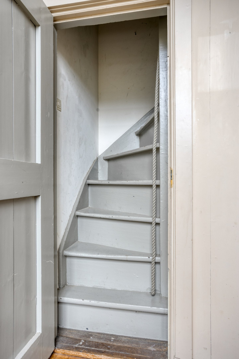 Tweede verdieping Zolderruimte die gedeeltelijk kan dienen als opslag. Op de zolder is eveneens het mechaniek aanwezig dat de tijdsaanduiding regelt en het luiden van de klok aanstuurt.