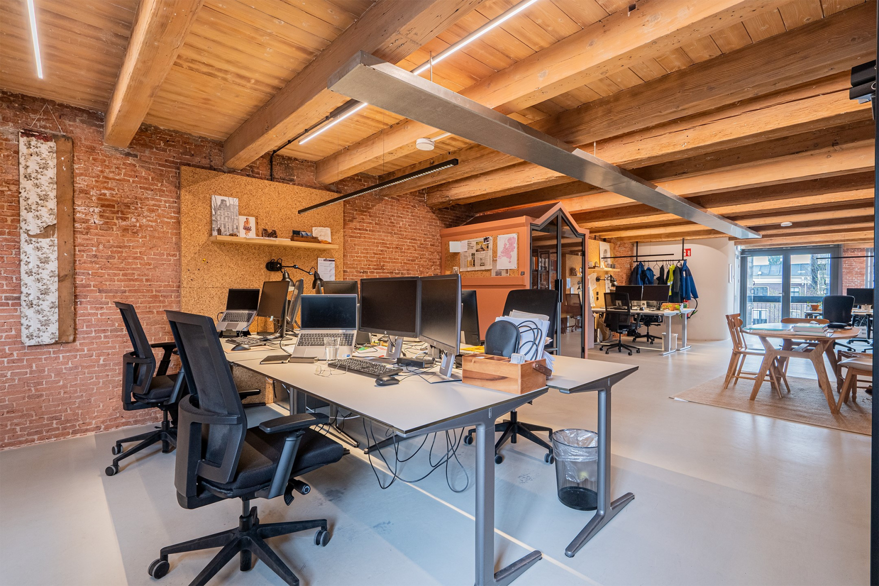Het pand heeft een steil trappenhuis. In nader overleg kunnen verlichtingsarmaturen, keukenapparatuur en diverse kantoormeubels achter blijven, waaronder belhokjes. Deelverhuur is eventueel bespreekbaar vanaf 162 m2.