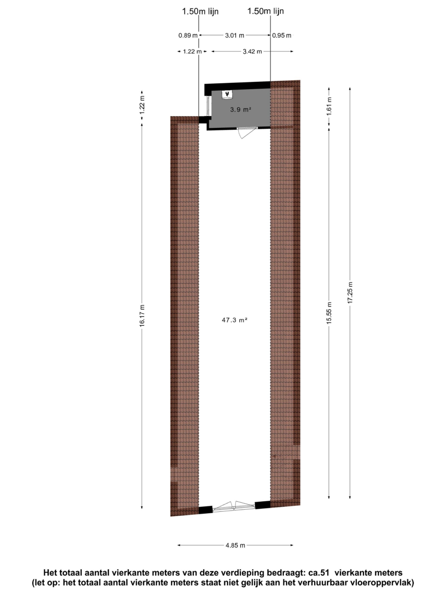 Derde verdieping: Deze verdieping ca. 82 m2 is vrijwel identiek aan de eerste verdieping, eveneens met moderne toiletruimte, moderne pantry en inpandig balkon (ca. 2 m2).