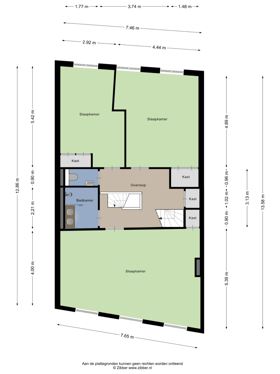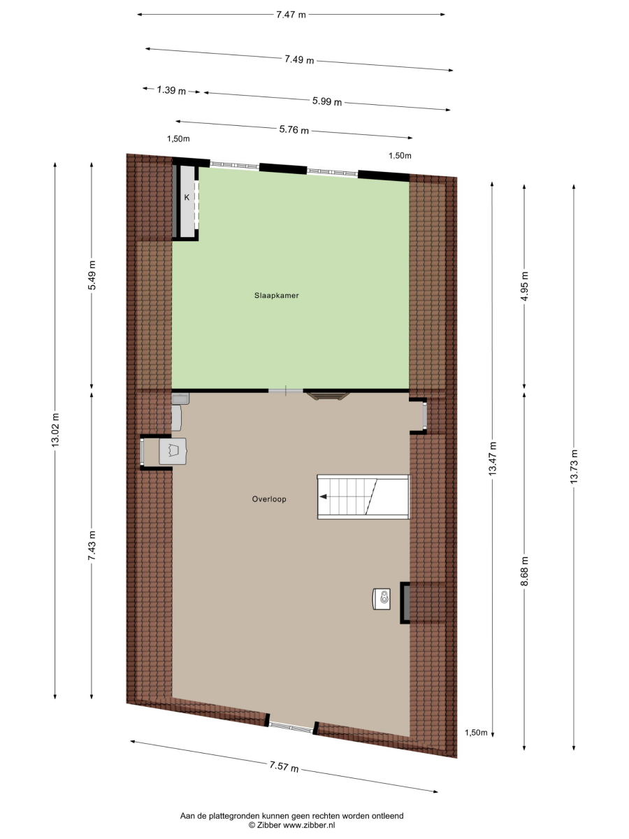 Tweede verdieping: Grote zolder (ca. 48m2) met opstelplaats voor de wasmachine en de droger. Sfeervolle slaapkamer (ca. 30m2) met daarboven nog een zolderberging (ca. 12,5m2).