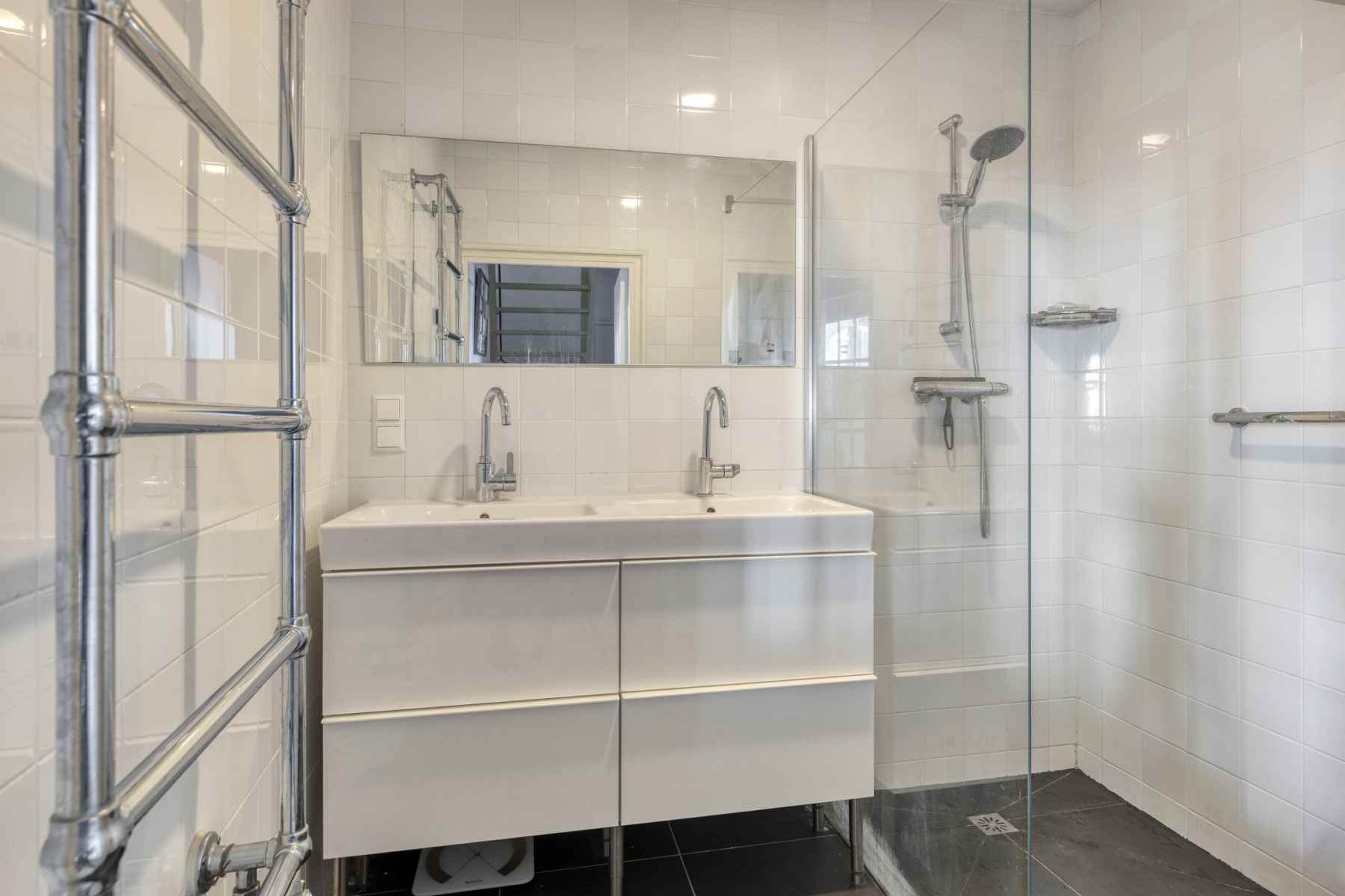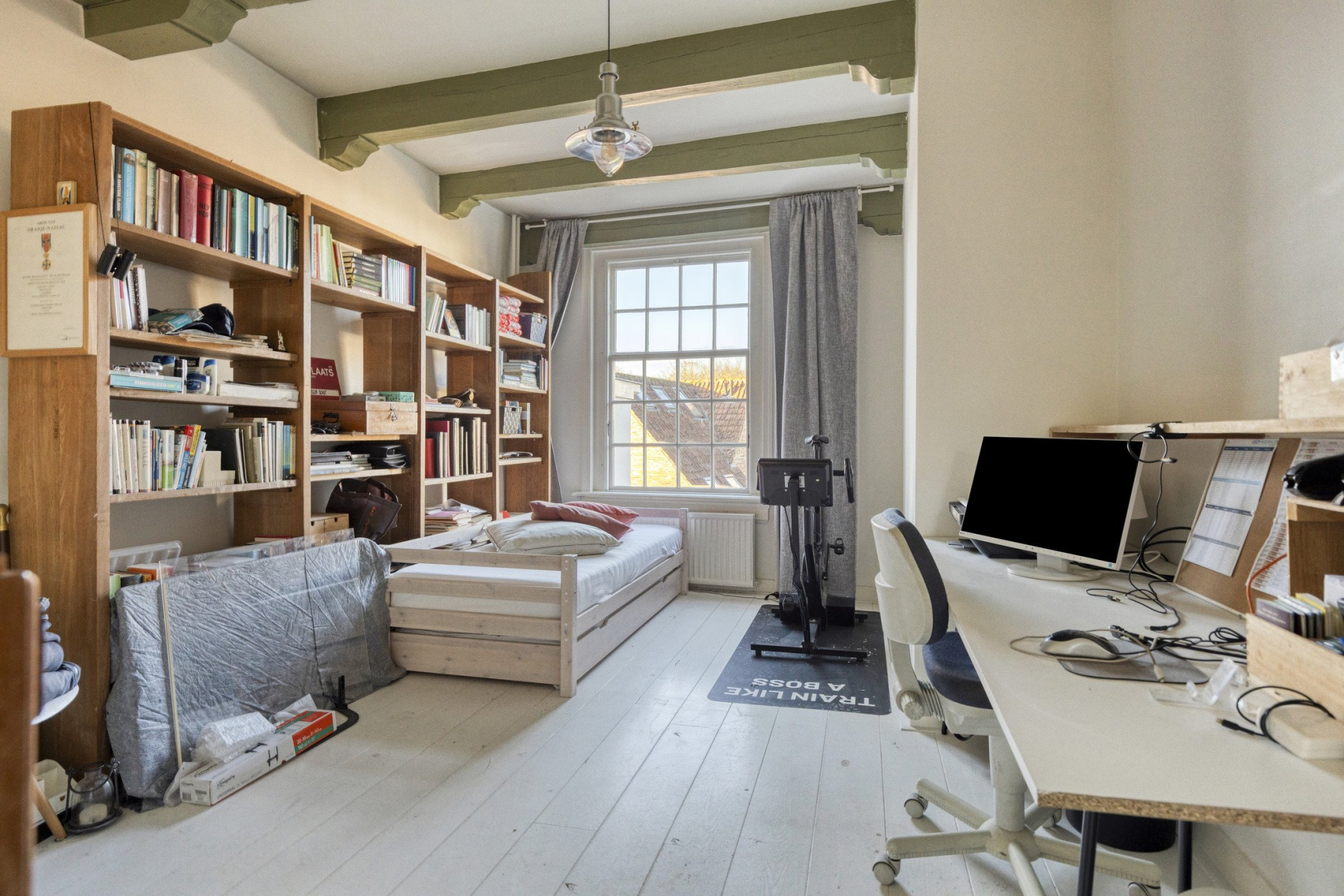 Plavuizen, hoge ramen en hoge balken plafonds, zeer ruime kamers, een moderne keuken en dito badkamer (met inloopdouche), een extra ruime zolder met verrassend charmante zolderkamer en een prachtige tuin. Dit is wonen met stijl.