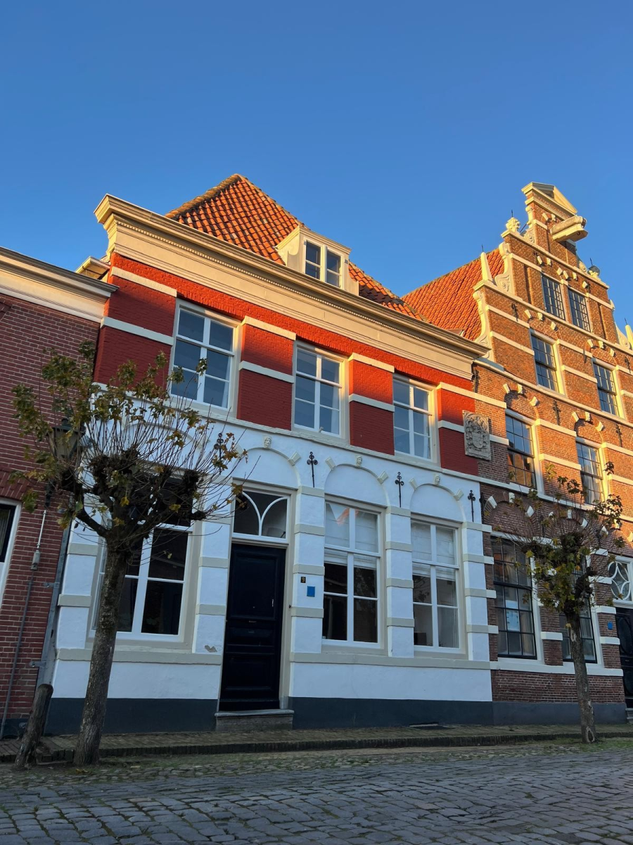 In het geliefde, pittoreske Naarden Vesting staat dit statige en bijzonder royale monument uit 1621. De ruime tuin op het noordwesten heeft een brede toegang via de achtergelegen straat (Katrepel).