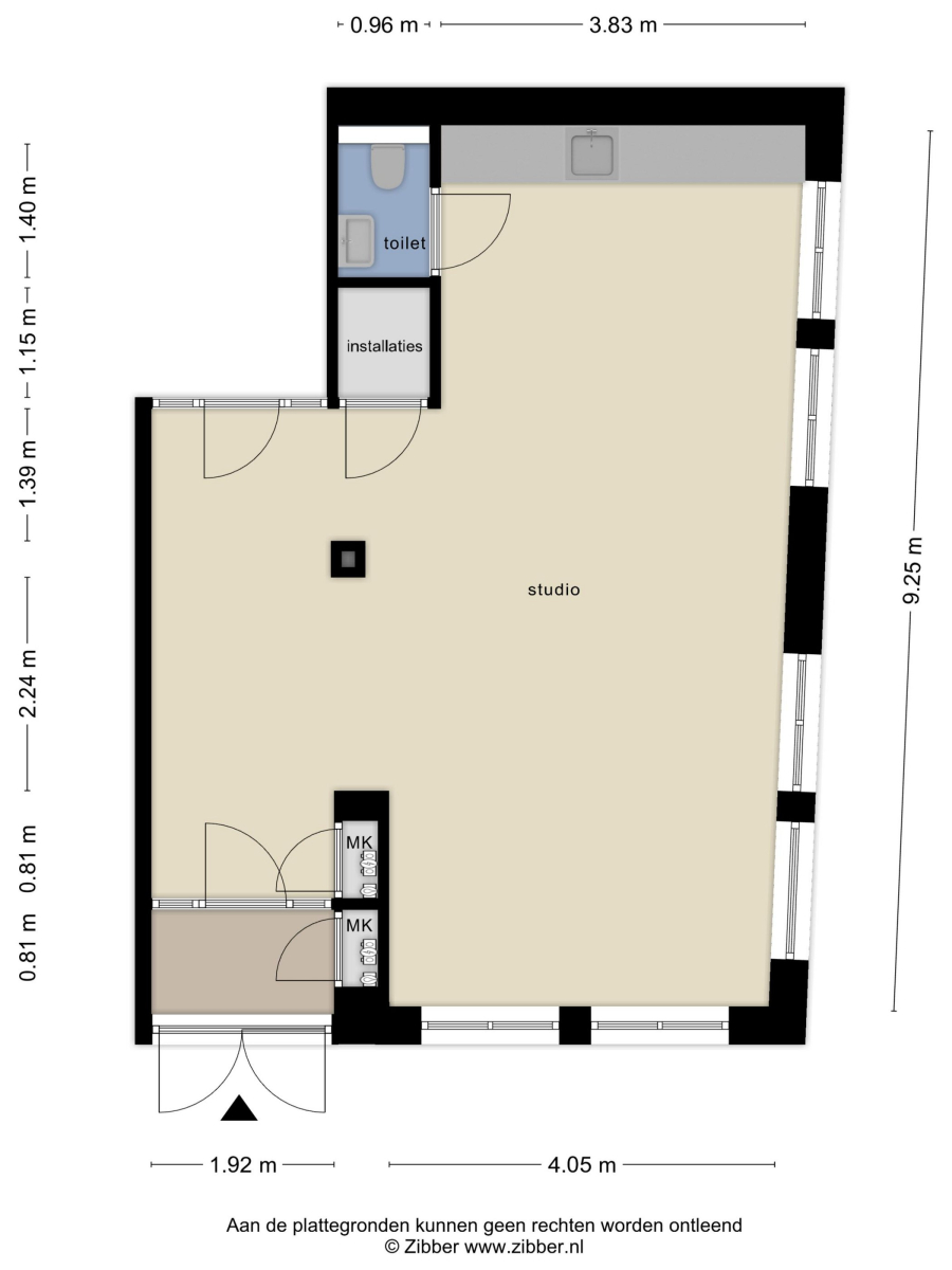 Deze bedrijfsruimte beschikt over een eigen buitenberging (ca. 2,7 m²) gelegen op de begane grond in een bijgebouw van het complex. Hier bevindt zich ook de gemeenschappelijke fietsenberging van ca. 39,7 m².