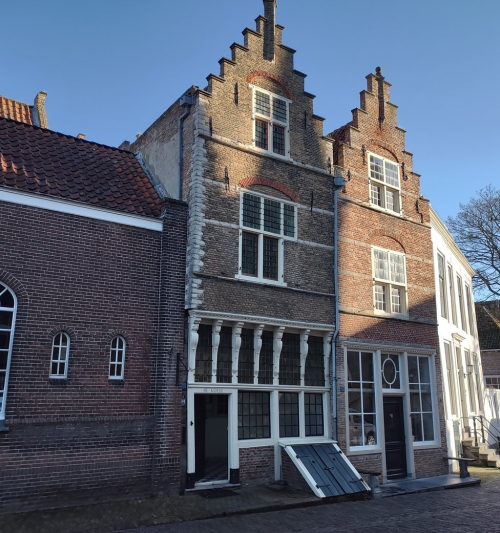 Dit laat middeleeuwse woonhuis uit circa 1600, genaamd ‘de Colve’, bieden wij u aan als winkel met woonruimte. De voorgevel heeft nog vrijwel precies de architectonische vormen zoals die gebruikelijk waren in de 16e eeuw met haar houten ondergevel, trapgevel en kruiskozijnen. Het spreekt tot de verbeelding! Een betere locatie voor een winkelruimte, pal tegenover het stadhuis, is in Veere niet denkbaar.