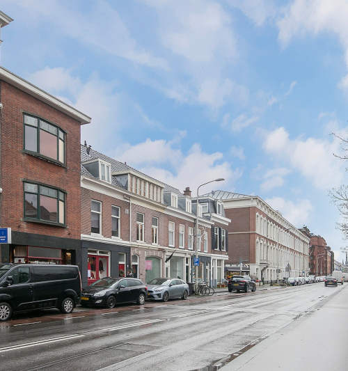 Deze woning ligt naast de Denneweg en is goed bereikbaar met het OV. Voor de deur zijn parkeerplaatsen (voor vergunninghouders en betaald) en fietshaken. Door het dubbele glas is de woning rustig ondanks de levendige straat.