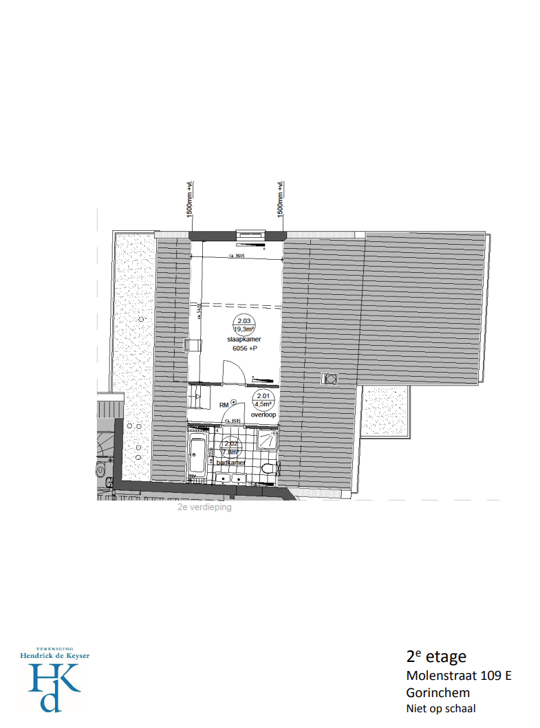 Tweede verdieping Grote slaapkamer (19m2) met overloop en prive badkamer (8 m2) met ligbad, douche en dubbele wastafel.