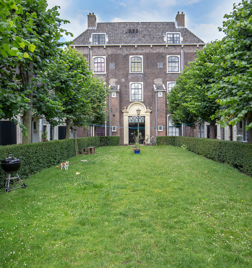 De woningen aan het hof delen een grote gemeenschappelijke tuin.