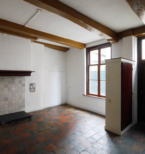 In het voormalige stal gedeelte (ca. 48m2) een royale woonruimte met de prachtige balkenconstructie in het zicht. Eenvoudige keuken (ca. 13 m2) en separaat toilet. Klein binnenplaatsje (4m2).