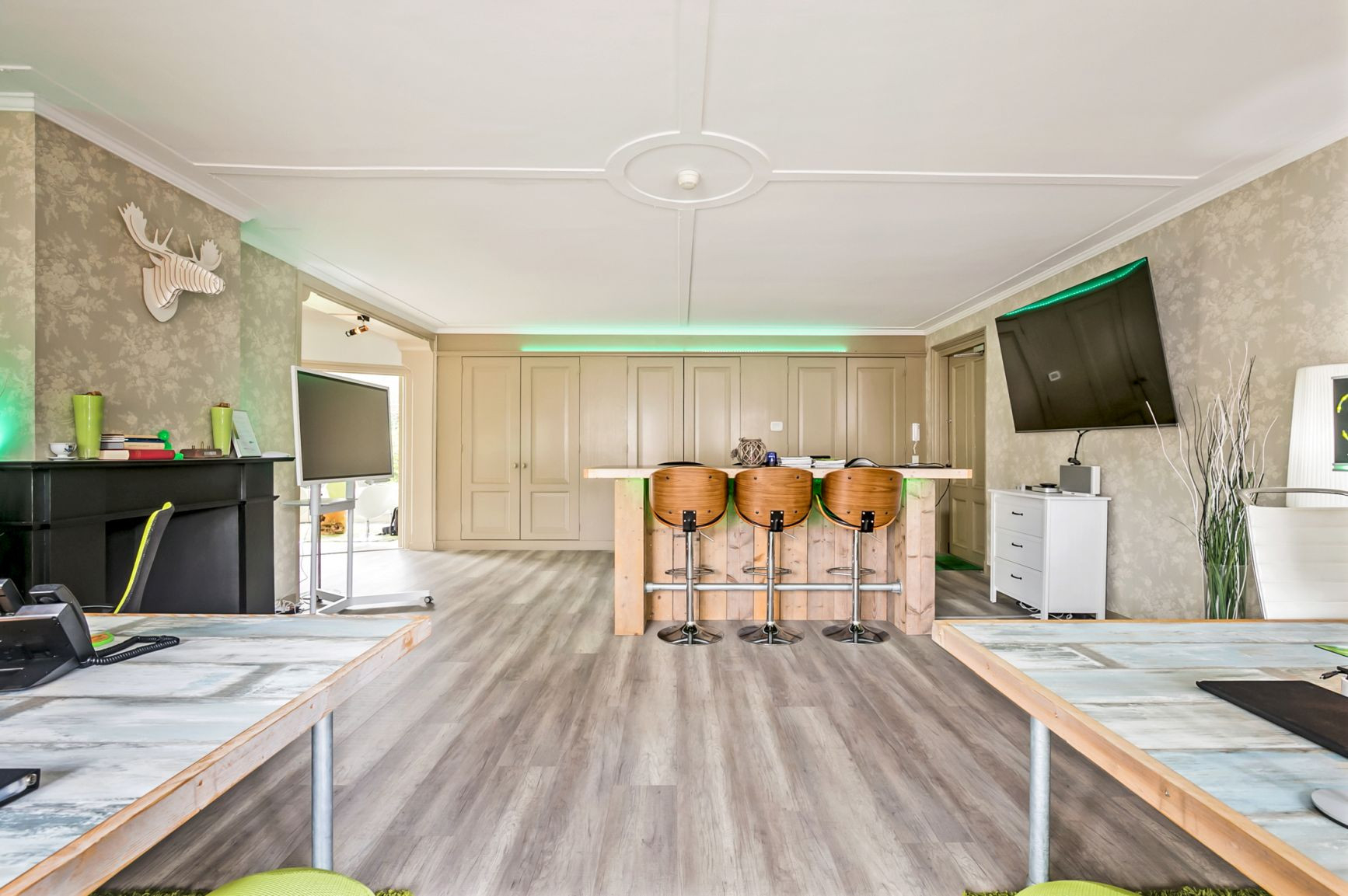 In het Hodshon Huis, één van de meest beeldbepalende panden aan het Spaarne, bieden wij een representatieve kantoorunit te huur aan. De kantoorunit bevindt zich op de begane grond in de voormalige twee mangelkamers en tuinkamer van het huis. Deze zijn in 2014 prachtig gerestaureerd en hebben veel sfeer door de historische architectonische kenmerken zichtbaar in het interieur- en exterieur van het huis.