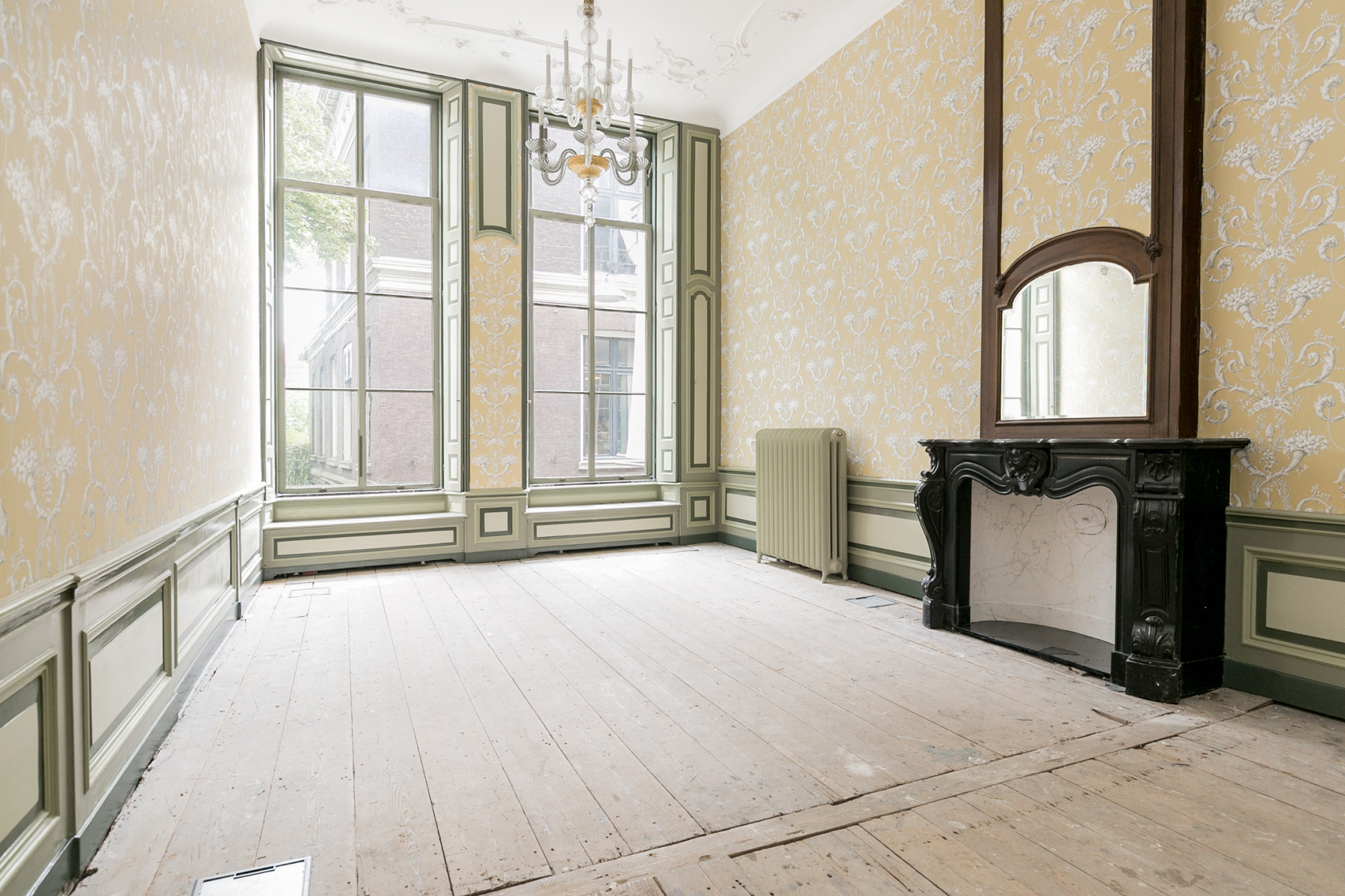 MODERNE GEMAKKEN IN EEN HISTORISCHE CONTEXT Ondanks de historische charme biedt Huis Rodenburch ook modern werkcomfort. De ruimtes zijn flexibel in te richten en geschikt voor diverse zakelijke doeleinden. De moderne keuken en sanitaire voorzieningen zorgen voor hedendaags gemak. Het pand beschikt bovendien over een kantoorzaal met eigentijdse uitstraling en historische details, zoals een terrazzovloer en een plafond met glas-in-lood accenten.