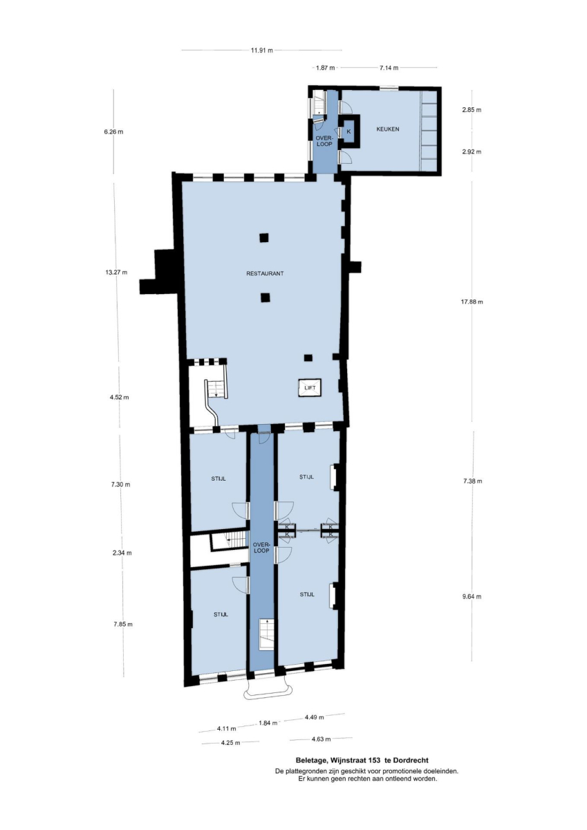 Dit zorgvuldig gerestaureerde pand combineert historische charme met moderne gemakken en biedt diverse verhuurbare ruimten. Het beschikt over een ruime bel-etage en een functioneel souterrain, geschikt voor uiteenlopende zakelijke doeleinden. De gunstige ligging en goede bereikbaarheid maken dit pand bijzonder aantrekkelijk voor bedrijven die waarde hechten aan zowel uitstraling als praktische toegankelijkheid.