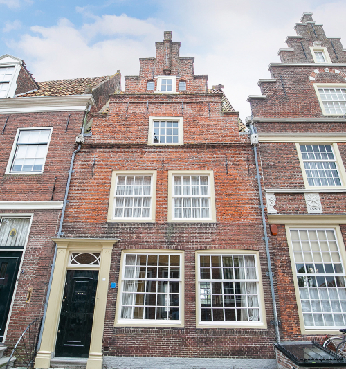 De schilderachtige huizen aan het Zuiderspui, vlak bij stadspoort ‘De Drommedaris’, werden halverwege de 17e eeuw gebouwd op een smalle strook grond die vrijkwam na de sloop van de middeleeuwse stadsmuur. Omdat de ruimte tussen de haven en de straat beperkt was, werd het huis de hoogte in gebouwd. Het pand is volledig onderkelderd, heeft een verdieping en beschikt bovendien over een zolder. De indeling is eenvoudig, met een kap evenwijdig aan de straat en een steekkap met trapgevel aan de straatzijde.