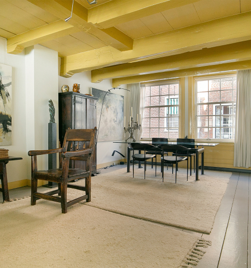 Tot voor kort was de begane grond nog steeds opgedeeld in een voorhuis en een ‘binnenhaard’, het belangrijkste vertrek met een schouw. De verdieping was bereikbaar via een spiltrap in de achterkamer. Aan de achterzijde waren op kelderniveau een deur en een venster geplaatst, zodat men per bootje kon aanleggen bij het huis. Tegenwoordig vormt dit de toegang tot de tuin.