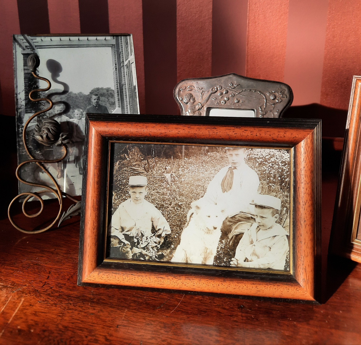 Nansen was niet zomaar een huisdier om mee te pronken. Hij was een heus en geliefd onderdeel van de familie, en er zijn diverse foto’s gevonden waarop hij samen met de familie te zien is. Als onderdeel van de familie kon een geschilderd portret natuurlijk niet uitblijven: de bekende schilder Otto Eerelman, die zijn specialiteit had gemaakt van het portretteren van huisdieren, en dan vooral honden, vereeuwigde Nansen op doek. Het portret is gemaakt in een echte studio, je ziet het zware velours gordijn op de achtergrond.