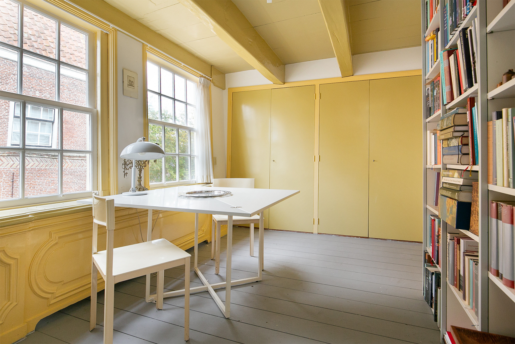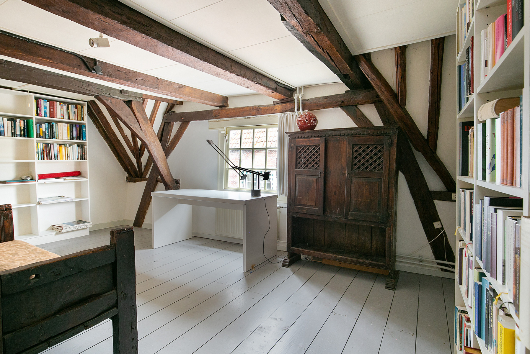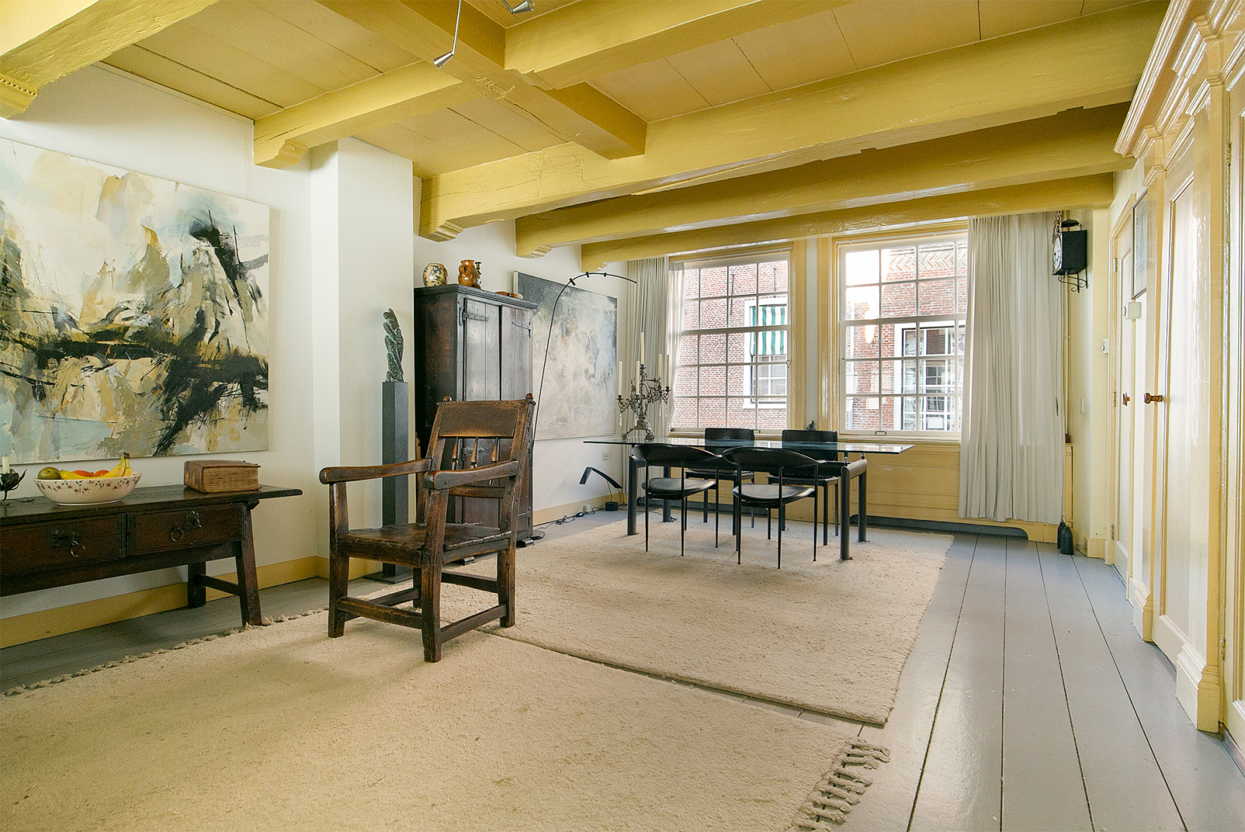 Tot voor kort was de begane grond nog steeds opgedeeld in een voorhuis en een ‘binnenhaard’, het belangrijkste vertrek met een schouw. De verdieping was bereikbaar via een spiltrap in de achterkamer. Aan de achterzijde waren op kelderniveau een deur en een venster geplaatst, zodat men per bootje kon aanleggen bij het huis. Tegenwoordig vormt dit de toegang tot de tuin.