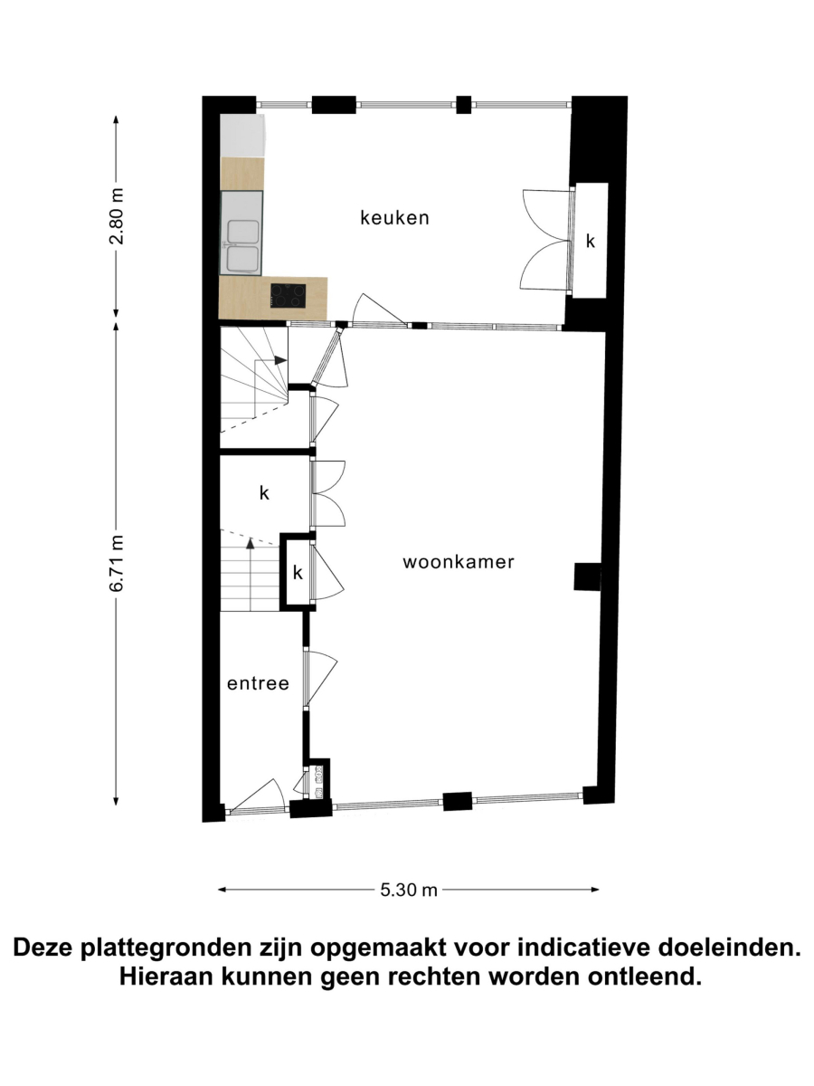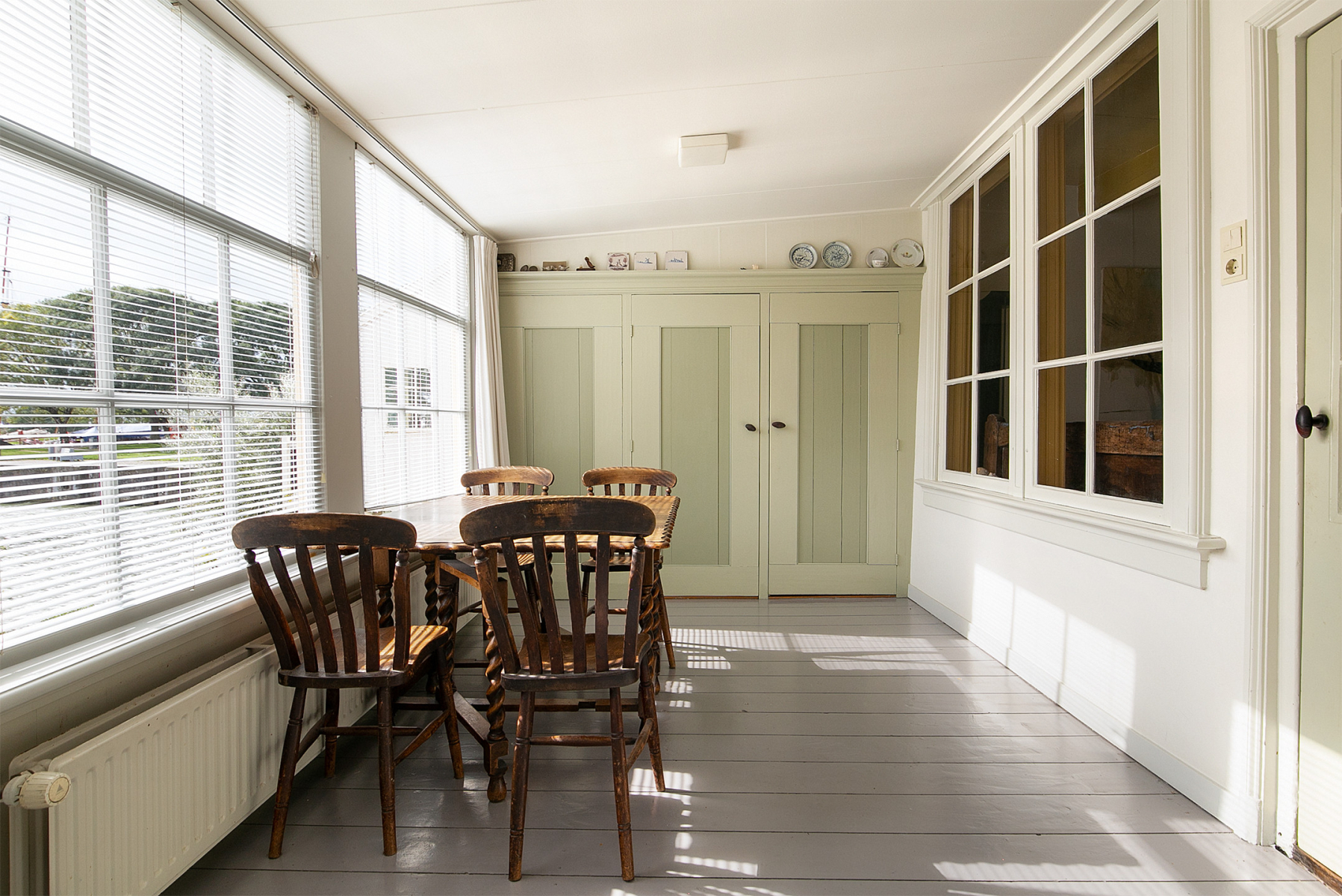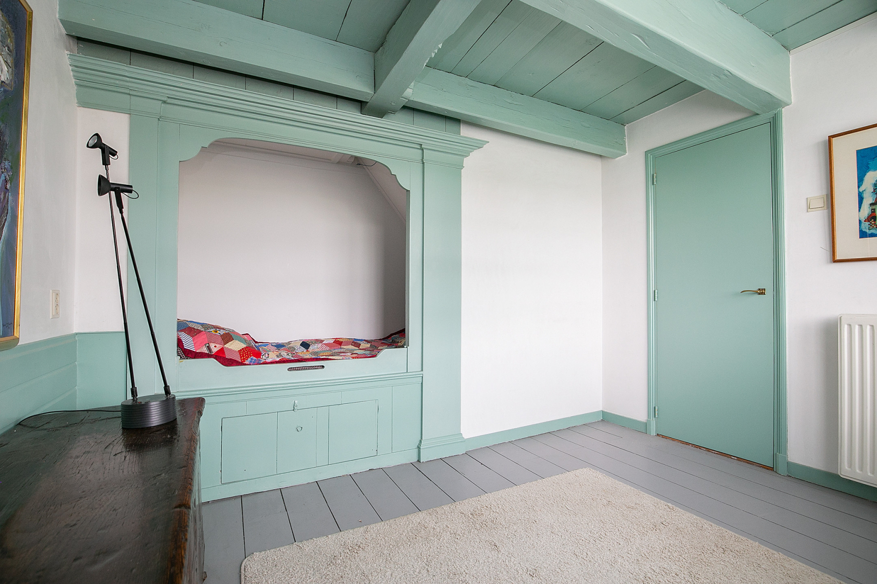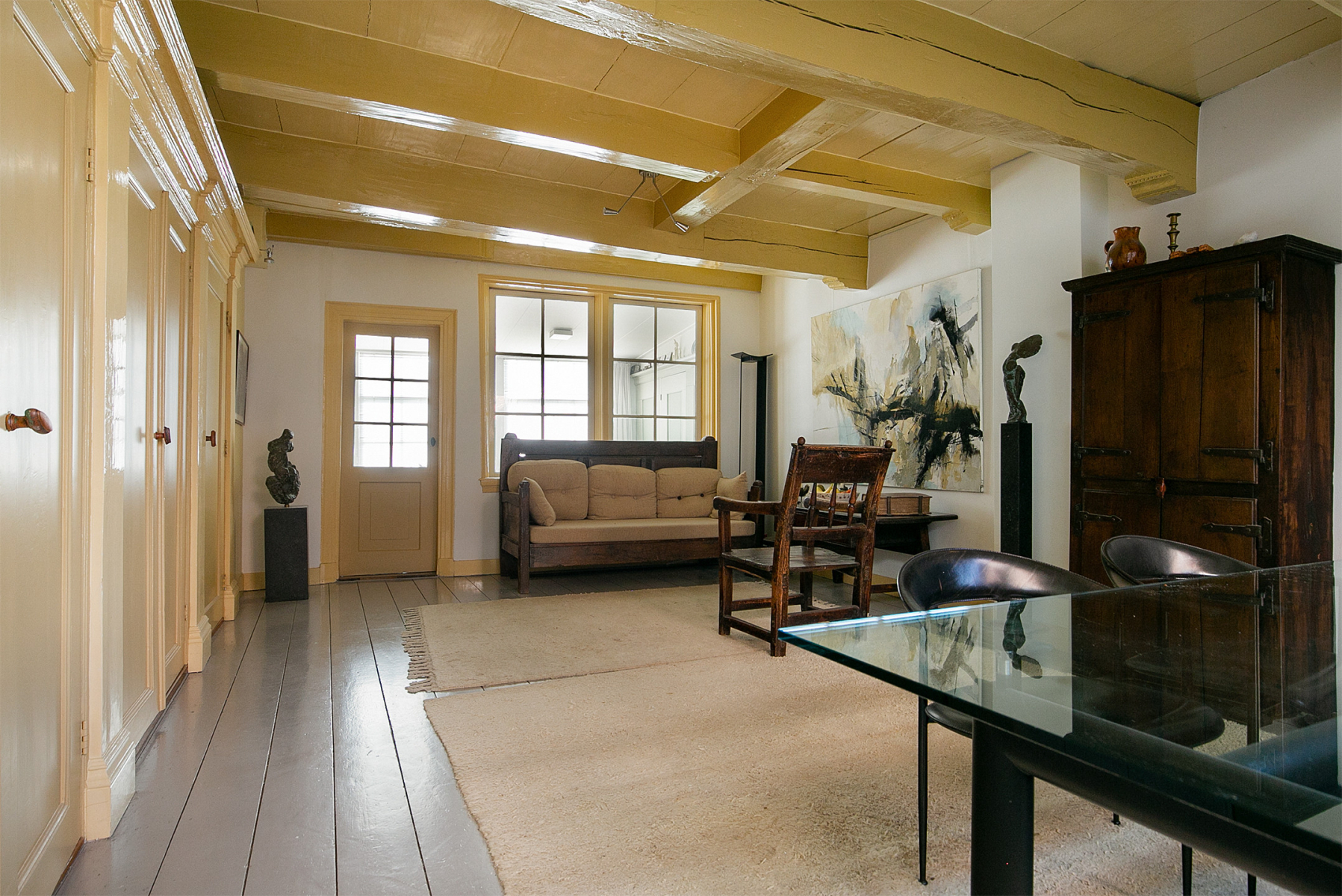 Tot voor kort was de begane grond nog steeds opgedeeld in een voorhuis en een ‘binnenhaard’, het belangrijkste vertrek met een schouw. De verdieping was bereikbaar via een spiltrap in de achterkamer. Aan de achterzijde waren op kelderniveau een deur en een venster geplaatst, zodat men per bootje kon aanleggen bij het huis. Tegenwoordig vormt dit de toegang tot de tuin.