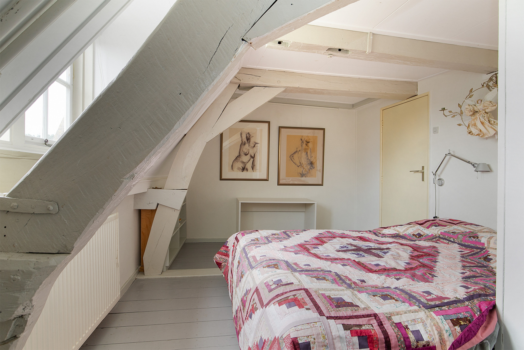De schilderachtige huizen aan het Zuiderspui, vlak bij stadspoort ‘De Drommedaris’, werden halverwege de 17e eeuw gebouwd op een smalle strook grond die vrijkwam na de sloop van de middeleeuwse stadsmuur. Omdat de ruimte tussen de haven en de straat beperkt was, werd het huis de hoogte in gebouwd. Het pand is volledig onderkelderd, heeft een verdieping en beschikt bovendien over een zolder. De indeling is eenvoudig, met een kap evenwijdig aan de straat en een steekkap met trapgevel aan de straatzijde.